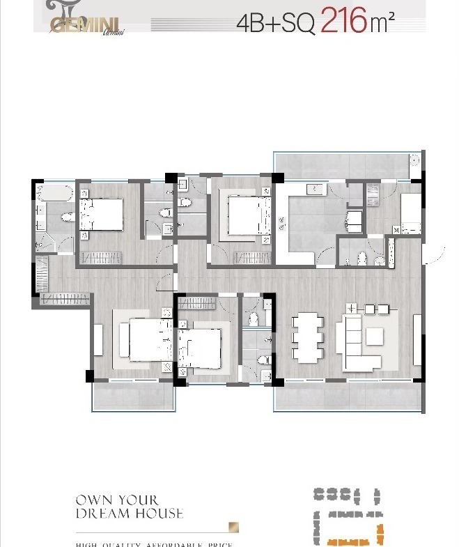 Gemini Residences features a variety of living spaces, including