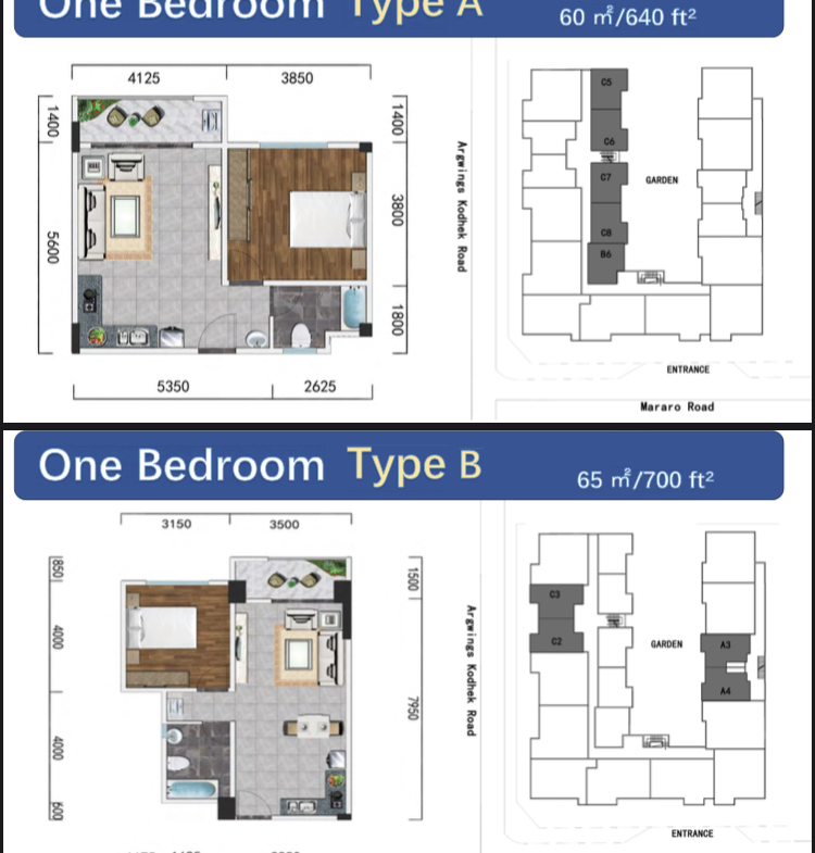 ▪️1 bedrooms type B (65 Sqm) Ksh
